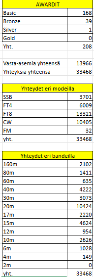 Juhlavuoden logitiedostot alkavat olla kasassa ja niiden perusteella awardeja menee jakoon parisataa. Alla myös yhteysmääriä eri modeilla ja bandeilla. Tarkistuslaskenta saattaa vielä hiukan muuttaa lukuja.