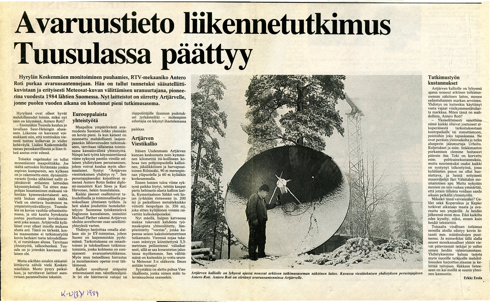 K-U_1989 Avaruustietoliikenne Tuusulassa, Artjärvi