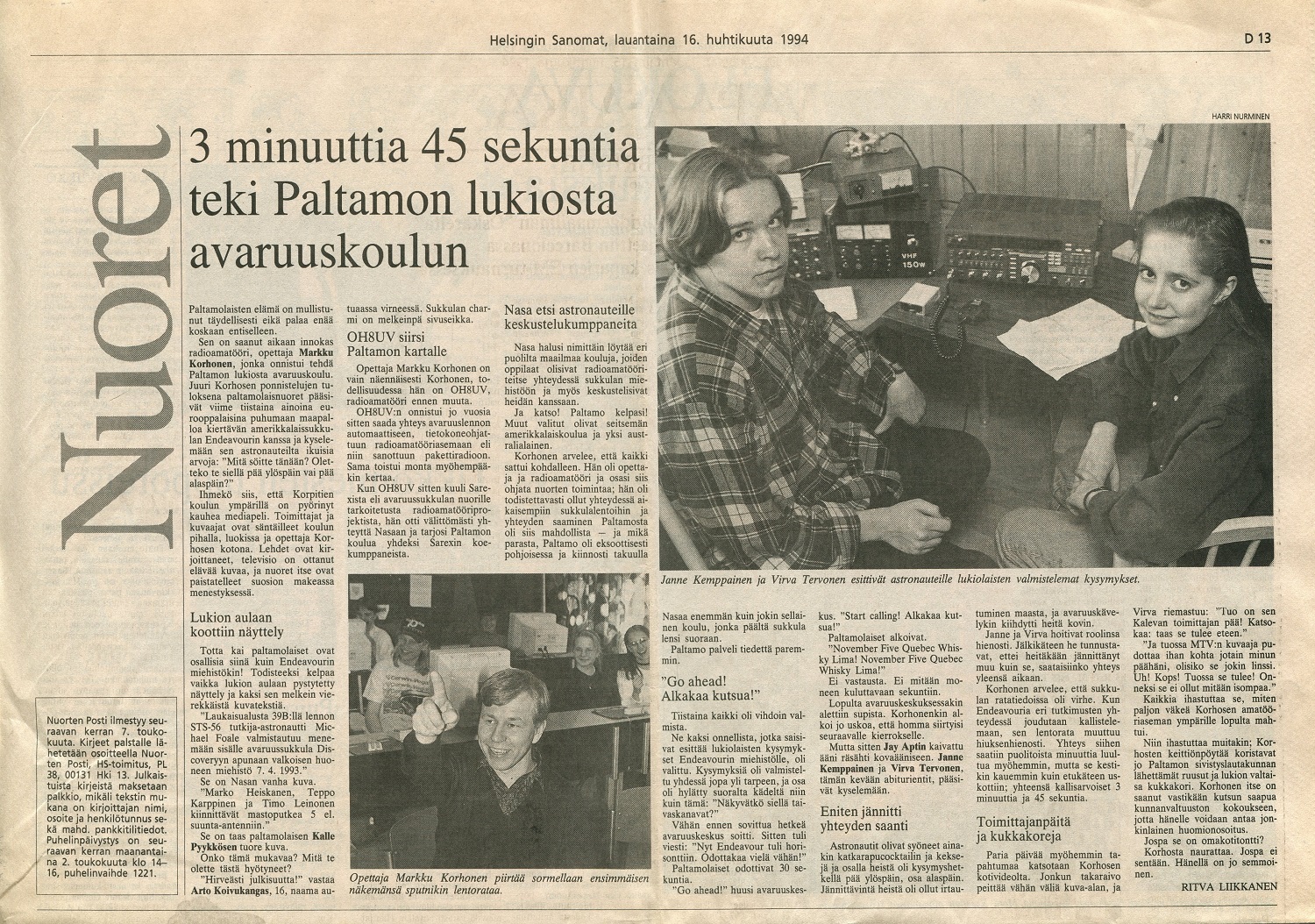 HS_16041994 Paltamon lukiolaiset yhteydessä sukkulaan