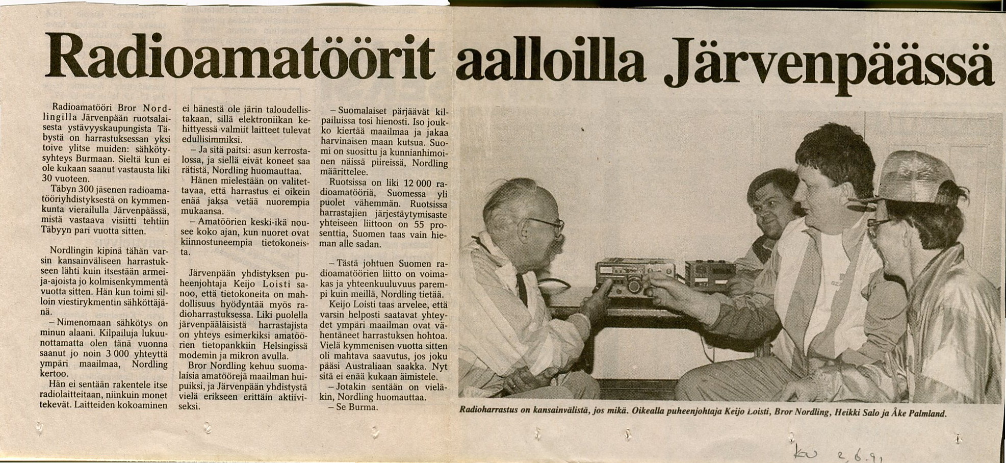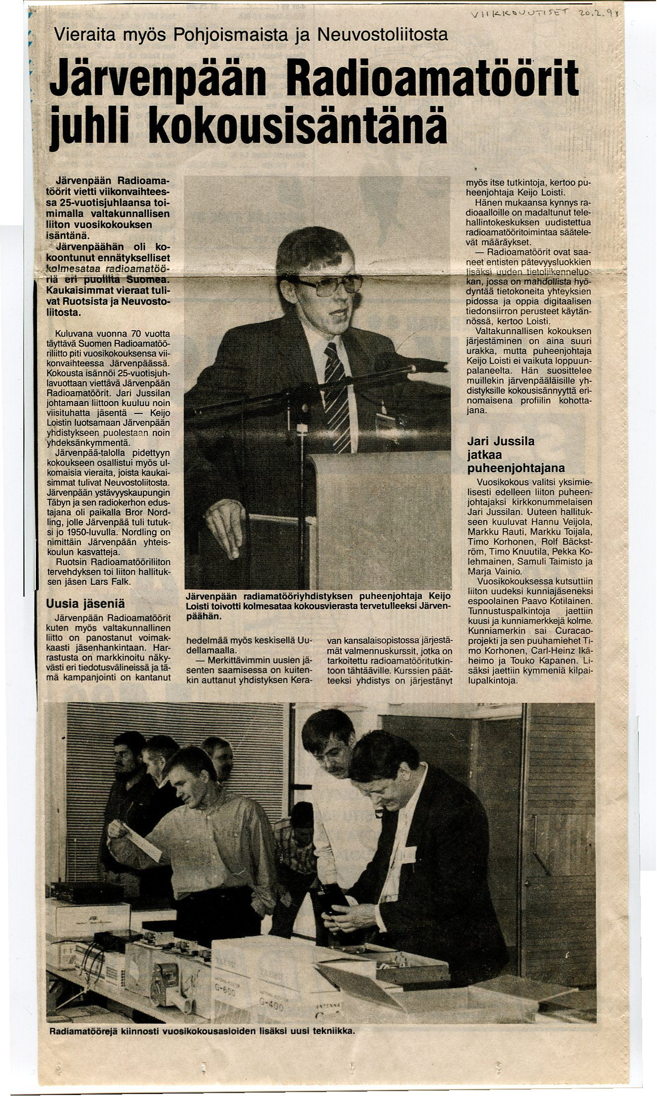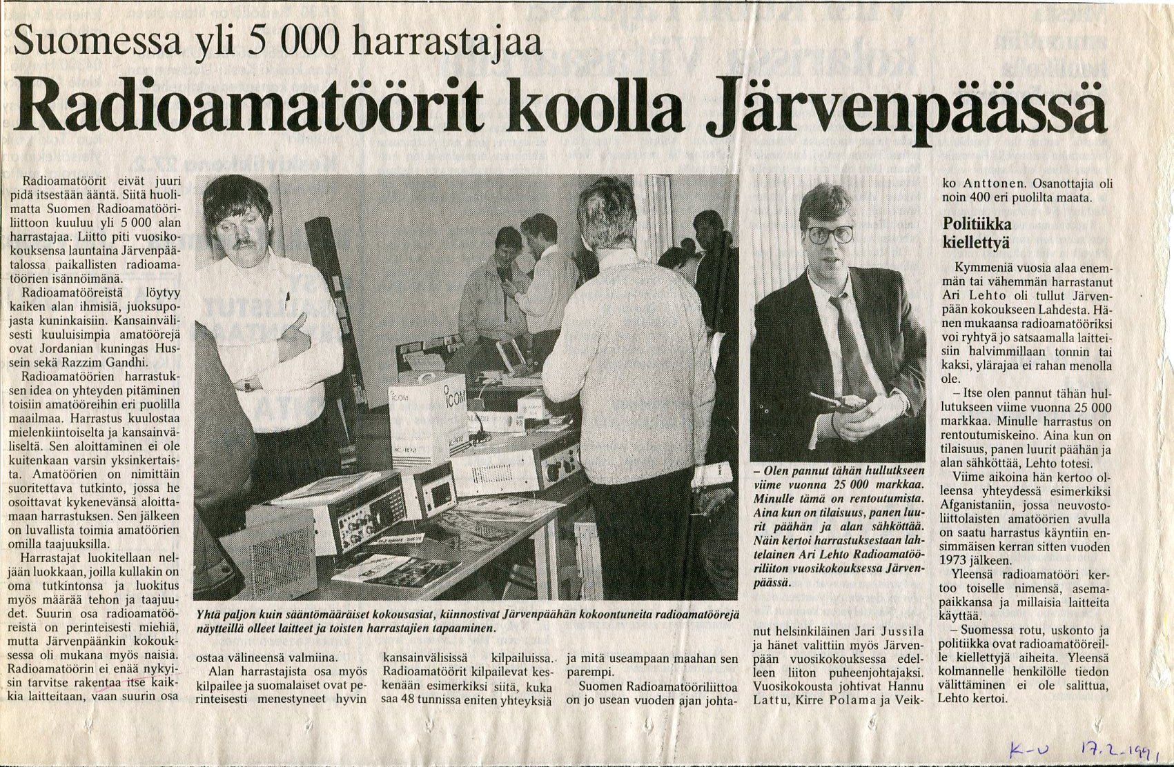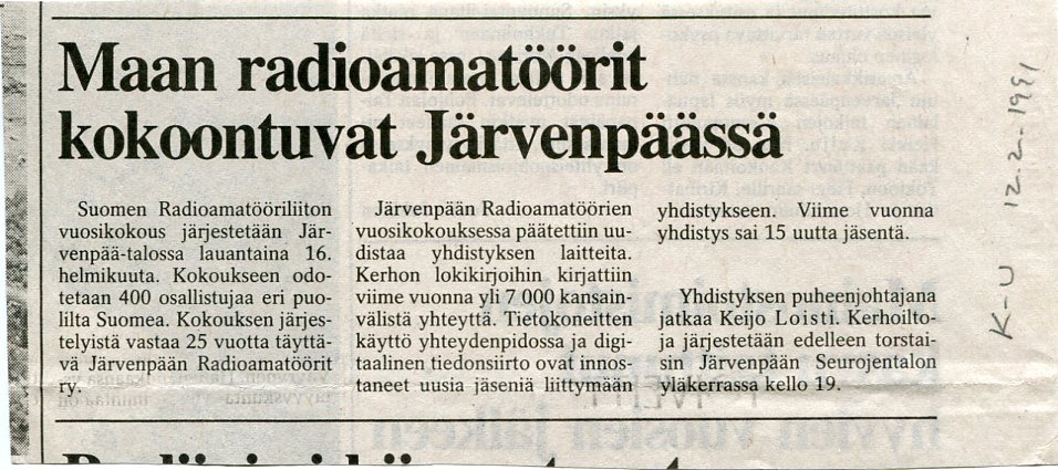 K-U_12021991 Suomen radioamatöörit tulevat kokoustamaan Järvenpäähän ja vuosikokouspäätökset lyhyesti