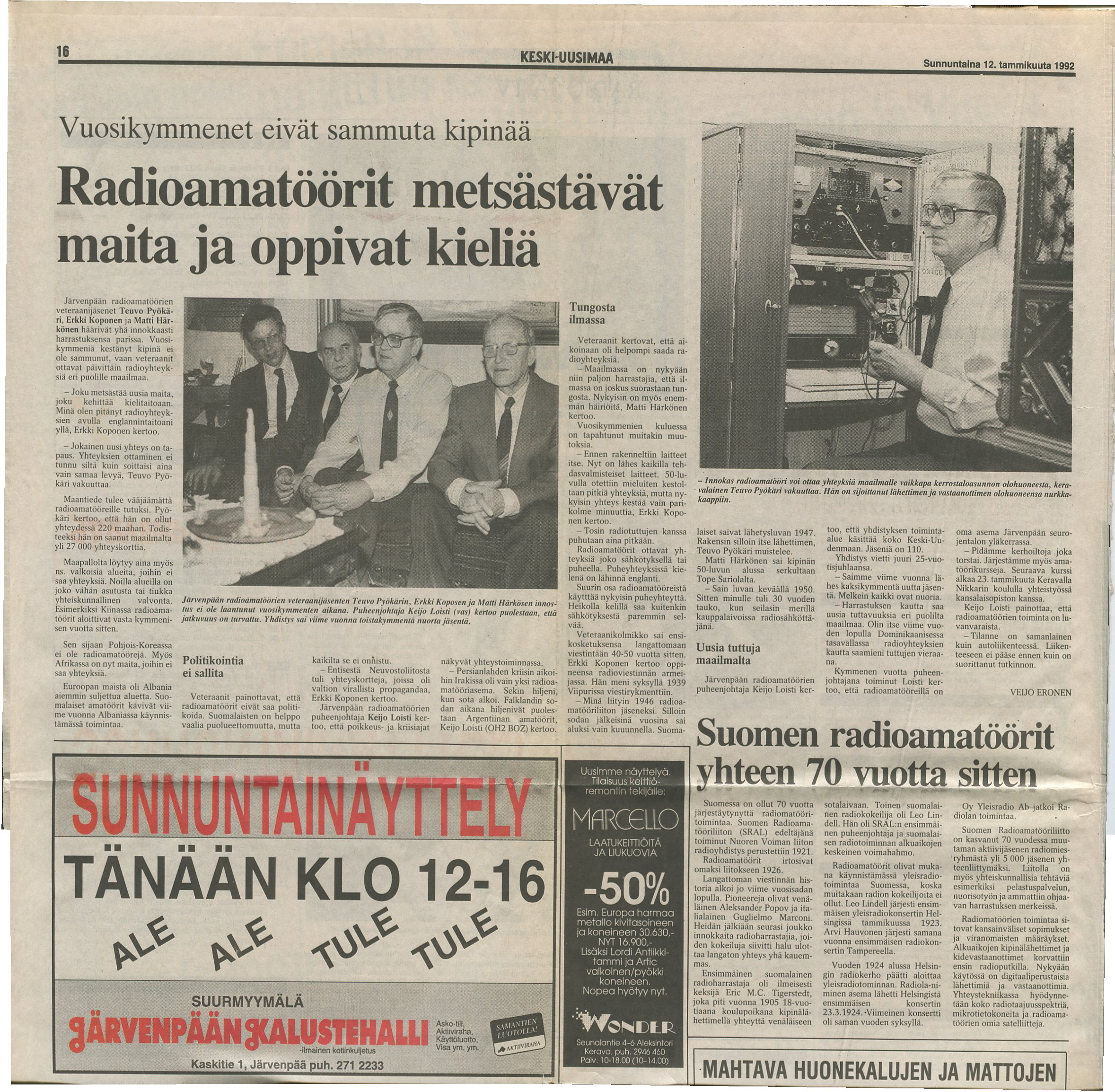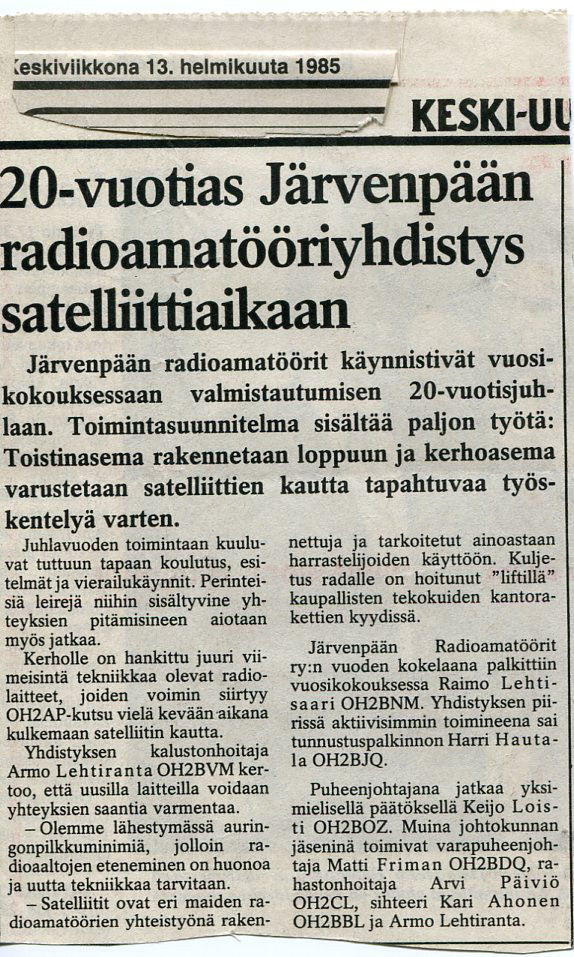 VU_26011992 Järvenpään Radioamatöörikerhokin mukana tekstitelevisiossa