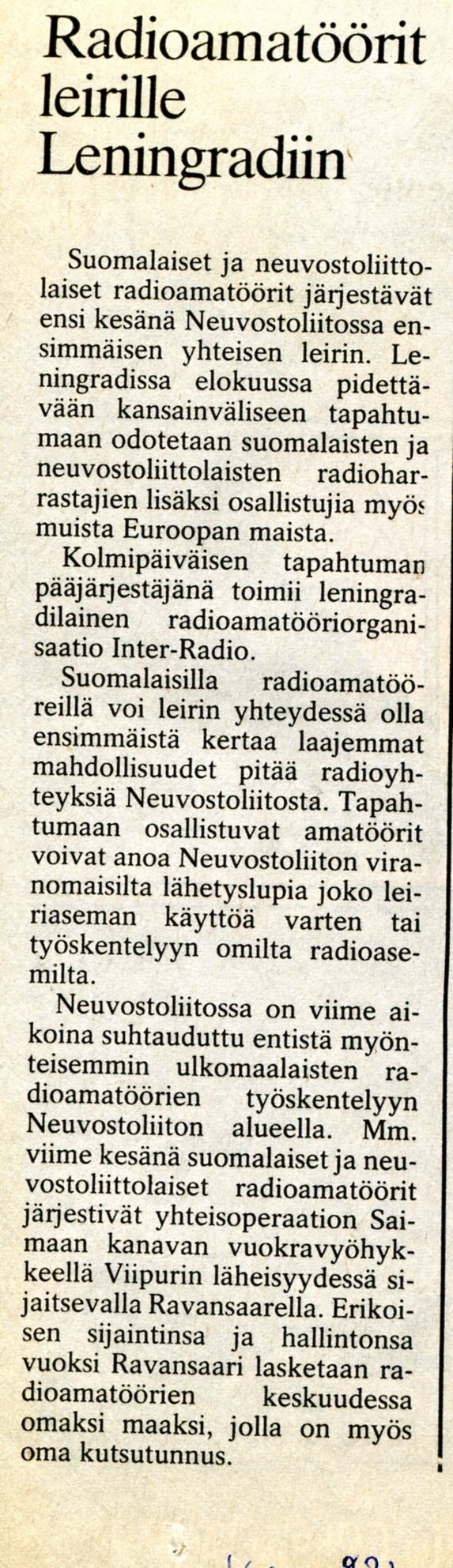 YV_1989kai_ Toke OH6RM ja Radioteam Finland valmistautuu Curacao-   operaatioon PJ9A/PJ9W