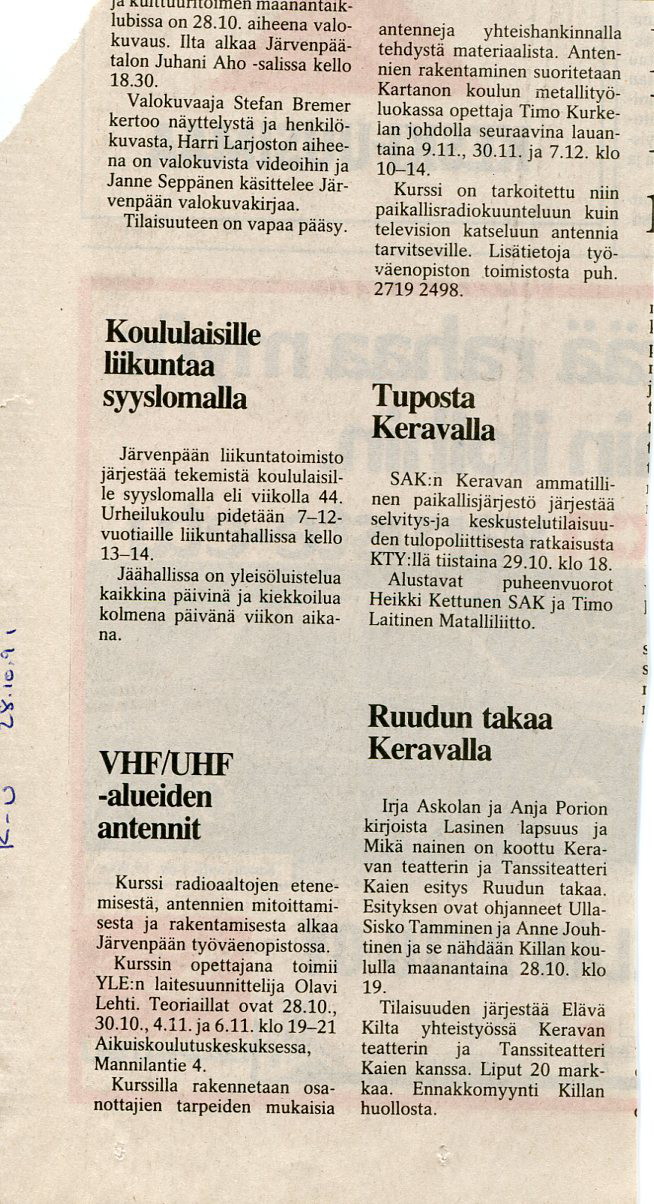 VU_27101991 ULA-alueen antennikurssi J:pään Työväenopistossa