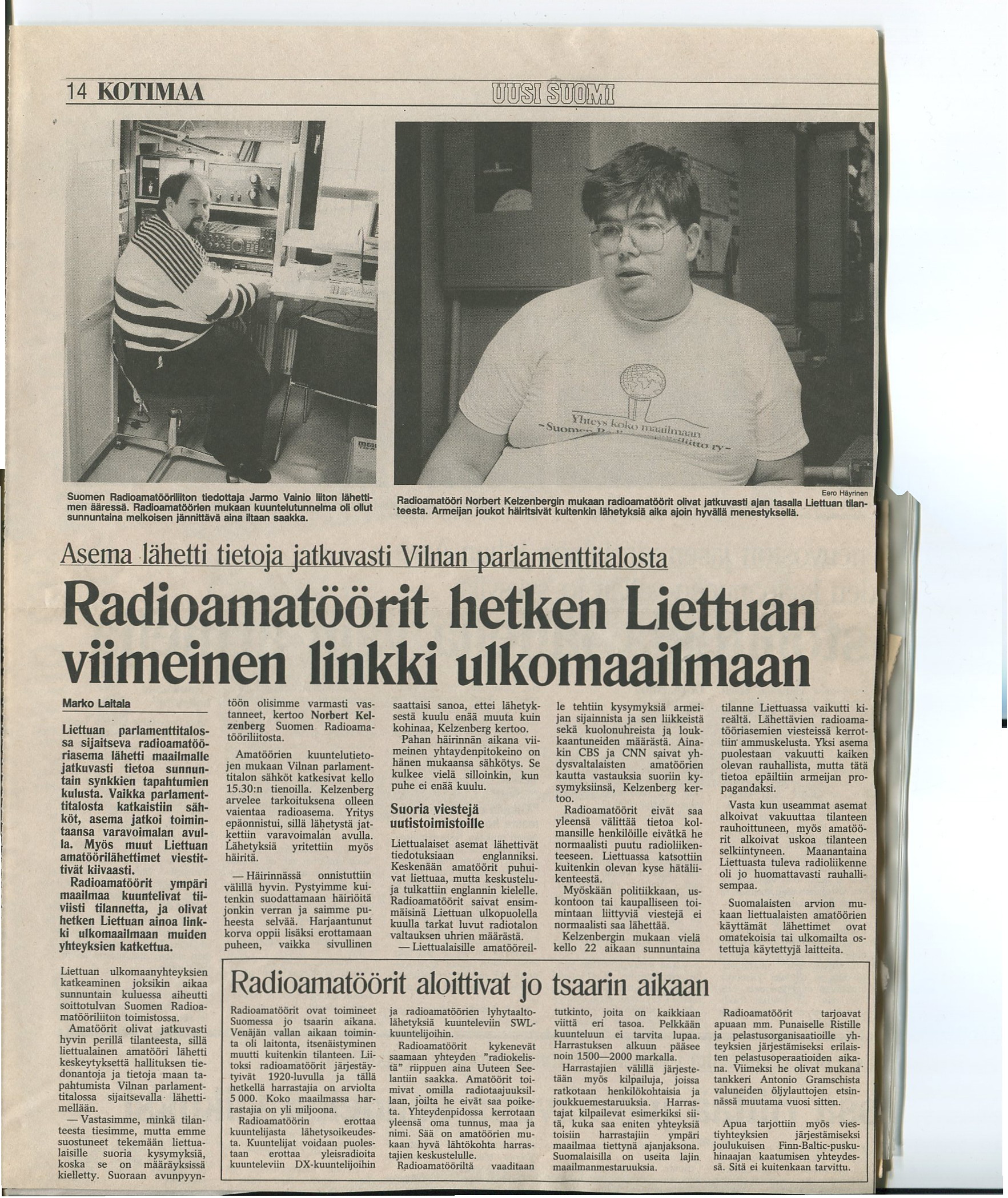 US_15011991 Liettuan irroittautuessa Neuvostoliitosta radioamatöörit olivat ainoa toimiva linkki ulkomaailmaan